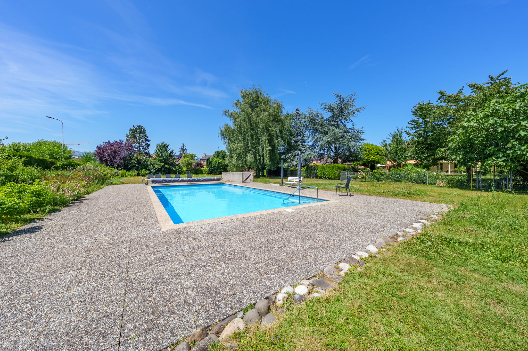 Un grand terrain commun avec piscine, vestiaire, douche et WC complètent les prestations de cette copropriété conviviale.