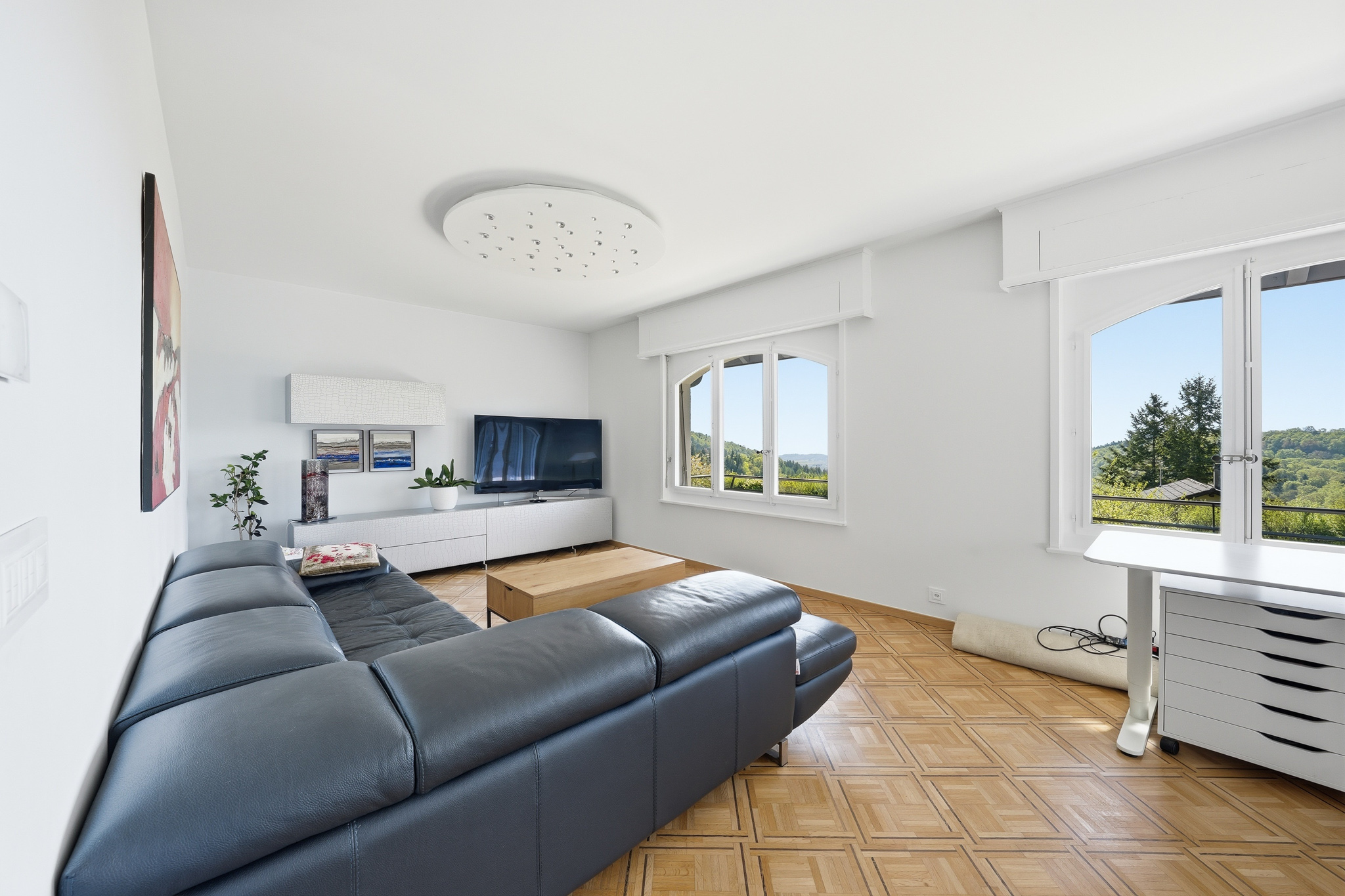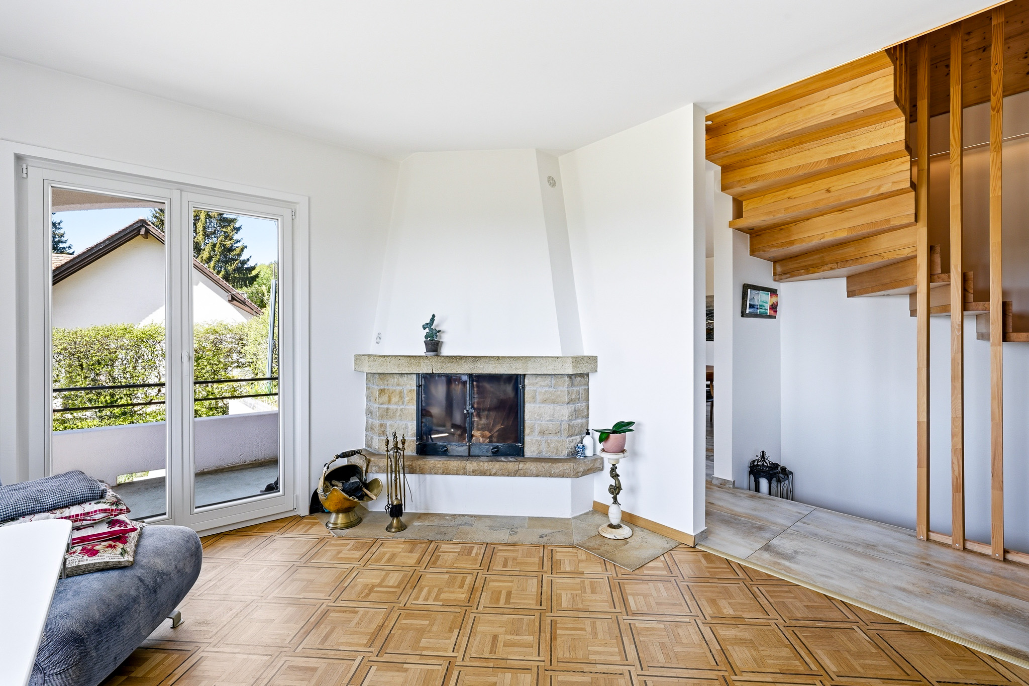 Située dans un environnement calme et verdoyant à Saint-George, cette charmante villa individuelle de 8 pièces offre une surface habitable d’environ 225 m² (280 m² bruts) sur une généreuse parcelle de 1’500 m².