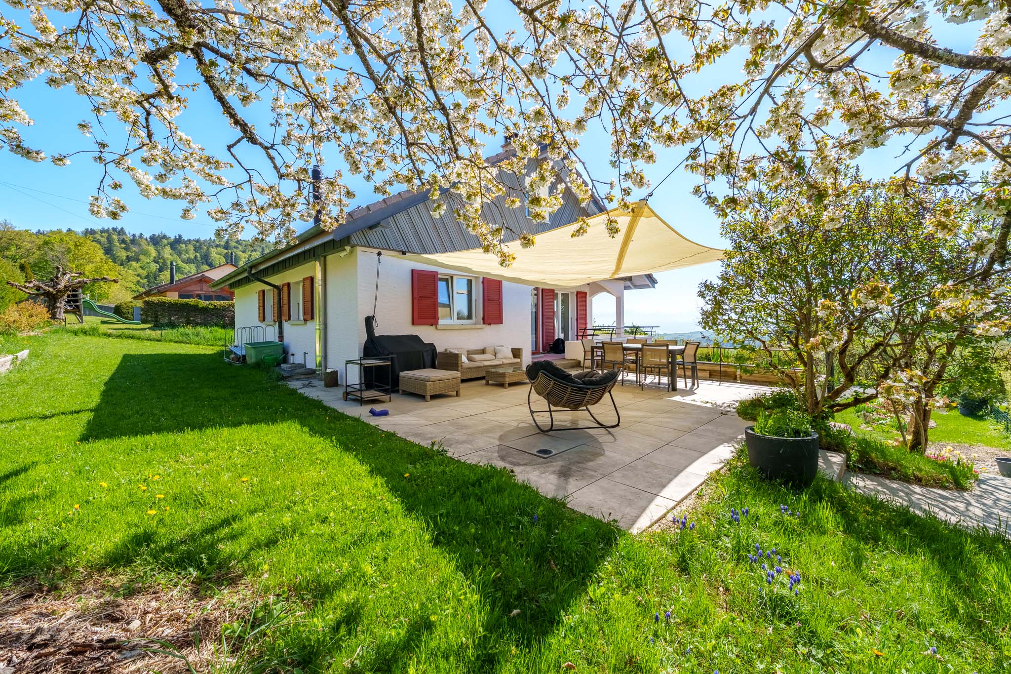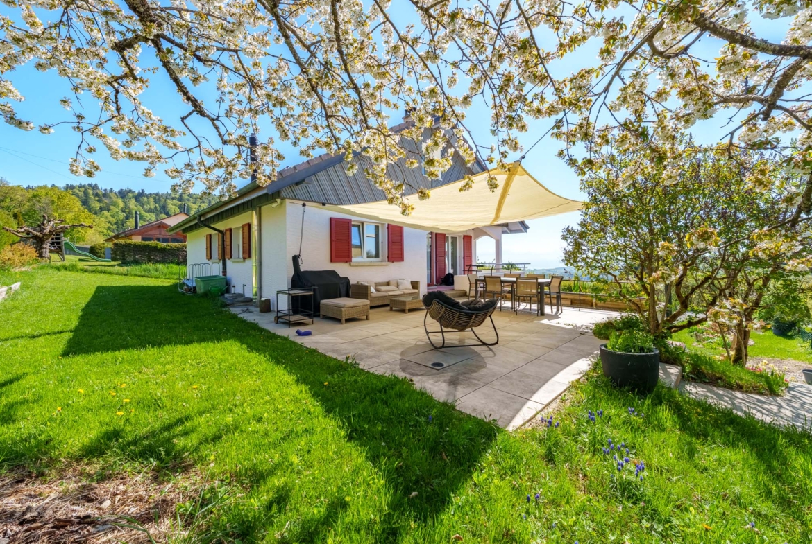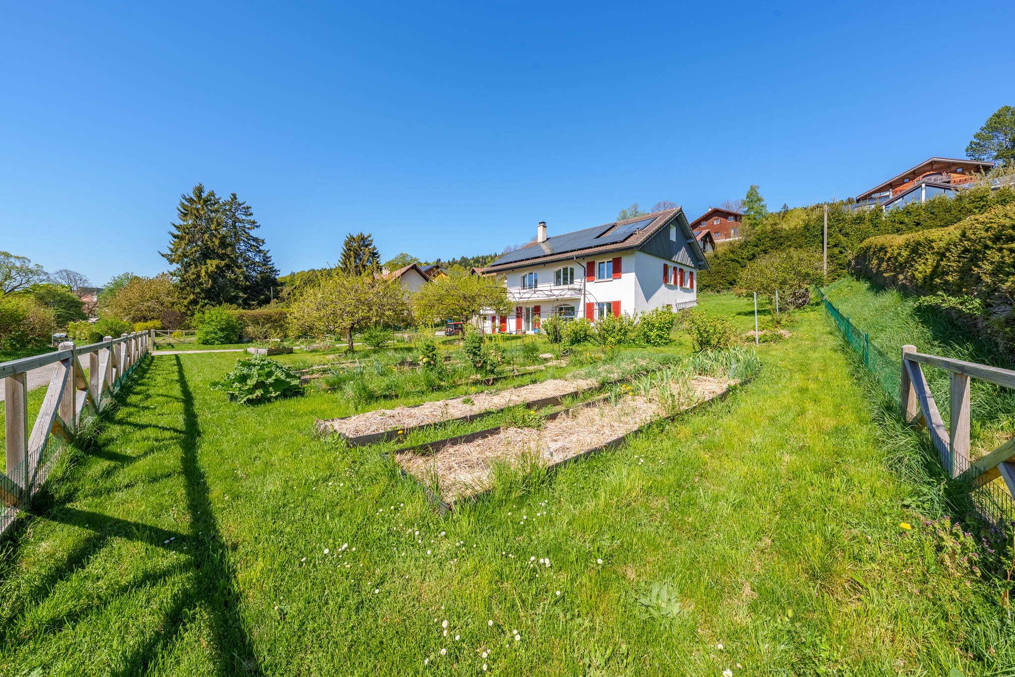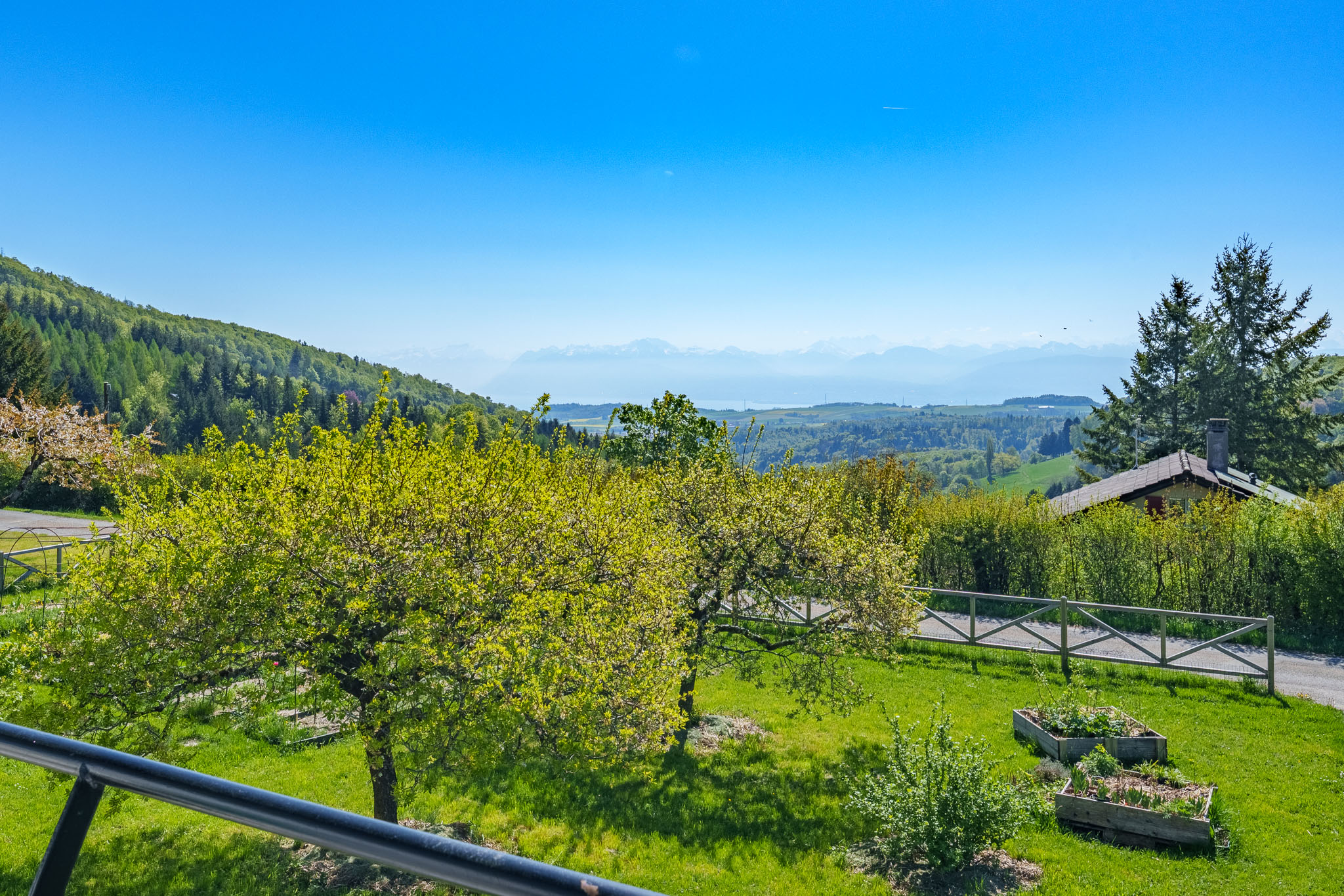 Bénéficiant d’une exposition Sud-Est / Sud-Ouest, la propriété profite d’un ensoleillement optimal et d’une vue dégagée sur le lac et les Alpes, dans un cadre naturel privilégié à 936 m d’altitude.