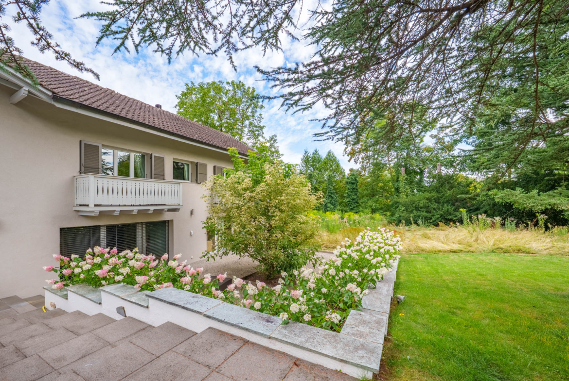 Au fond d'une impasse, dans la charmante commune de Versoix, cette propriété d'exception à l'architecture contemporaine et soignée offre un agréable jardin arboré et ombragé, bien entretenu et pensé pour le confort optimal de ses habitants.