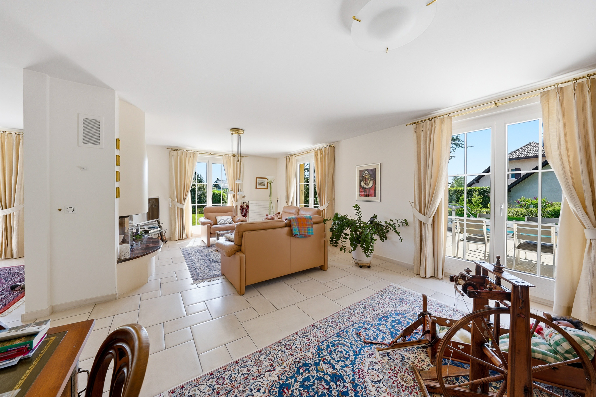 Édifiée sur une superbe parcelle arborée d’environ 2'000 m², cette villa développe près de 280 m² habitables et séduit par ses volumes généreux ainsi que sa belle luminosité.